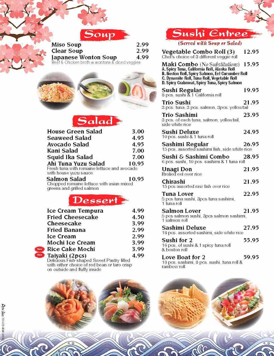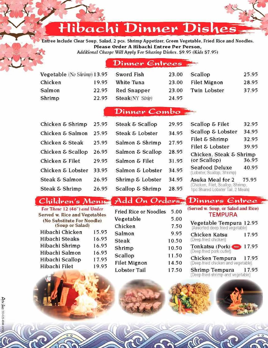 The Asuka Japanese Cuisine Menu offers an exciting selection of authentic Japanese dishes, perfect for anyone craving bold flavors and traditional recipes. Located at 7381 Market St, Youngstown, OH, this cozy spot features everything from fresh sushi rolls to savory ramen bowls. The menu is thoughtfully crafted, highlighting the rich culinary heritage of Japan with a modern twist. Whether you're in the mood for a quick bite or a full meal, Asuka’s variety of appetizers, entrees, and specialty rolls ensure there’s something for everyone. The quality ingredients and attention to detail in each dish make it a must-try for local food lovers. With every meal, you’ll experience the perfect balance of taste, texture, and presentation that will keep you coming back for more.